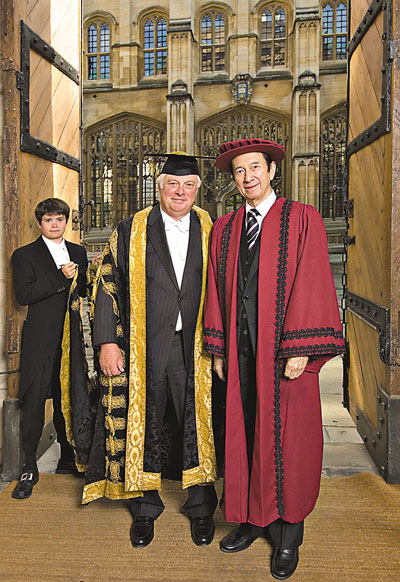 ■何鴻燊博士與校監彭定康勳爵攝於牛津大學評議院。