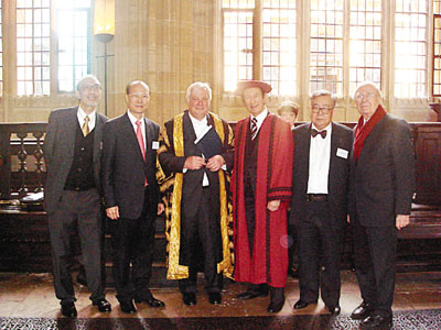 ■蘇樹輝(左二)、霍啟昌教授(左一)、趙令揚教授(右二)及鍾逸傑(右一)祝賀何鴻燊(右三)獲殊榮。