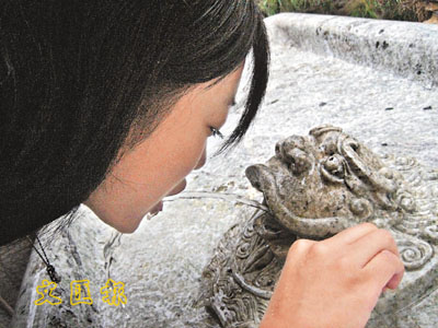 「天下第一泉」趵突泉建起遊客飲水點。遊客只需按動三個龍頭旁按鈕就可喝到從「鎮水獸」形龍頭裡噴出的趵突泉水,首次實現了趵突泉的賞、飲合一。本報駐山東記者于永傑 攝