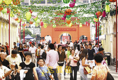 ■黃金周剛剛開始,澳門即擠滿觀光的內地客,市道暢旺。本報記者彭子文 攝