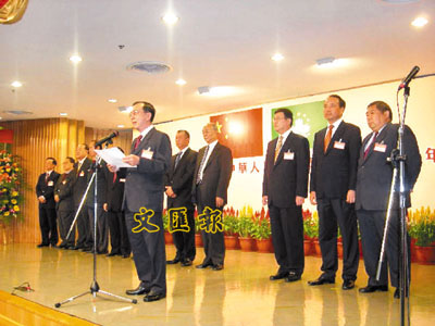 【本報駐澳門記者王海濤29日電】澳門中華總商會日前舉行慶祝中華人民共和國成立58周年酒會,澳門特區行政長官何厚鏵、中聯辦主任白志健、外交部駐澳特派員萬永祥、澳門中華總商會副會長馬有禮及數百名澳門政商界代表、社會知名人士出席。