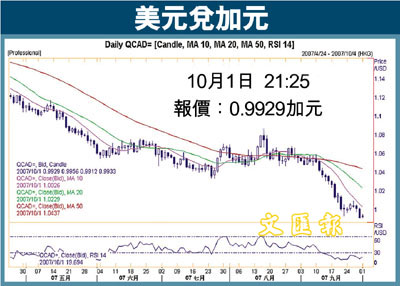 加元上周在1.0095水平附近獲得較大支持後,其走勢已進一步趨於偏強,在輕易向上突破1.000美元關口後,已一度反覆上揚至0.9912附近的31年高位。今次加元的升勢,除了是受惠於美元的疲弱之外,近期油價持續徘徊於每桶81至83美元水平,亦對加元構成頗大支持作用,因此若果油價於稍後一旦繼續高企於現水平,則加元的回吐幅度將會較為受到限制。而歐元在近日不斷向上屢創紀錄新高,這情況亦有助商品國貨幣的升勢,所以在歐元持續上揚的帶動下,預料加元將會反覆向上挑戰0.9800關口。