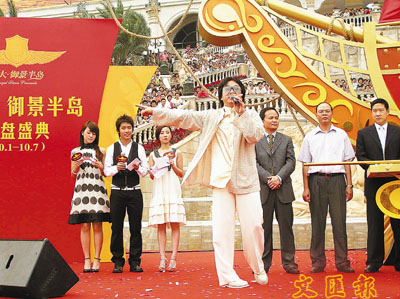 【本報珠三角新聞中心記者陳悅、何濤廣州1日電】內地樓市前景吸引,連香港明星成龍都甘願「落場玩埋一份」。位處廣州金沙洲核心區的恆大御景半島今日開盤,隨即迎來數萬名人接踵前往睇樓認購。作為剪綵嘉賓之一的成龍甫一到場就驚歎「十分好景」,更出人意表地公開宣稱,「我抵達後立即睇樓,僅花半個小時就決定買下一棟」。據稱,由於該盤對外開價不菲,估計成龍落訂的那棟臨江獨立別墅售價超過2,000萬元。