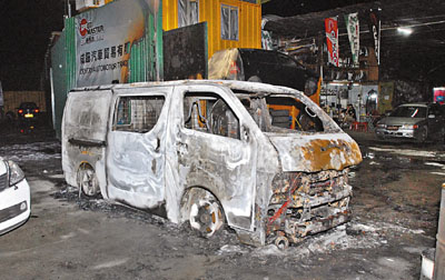 八鄉高埔村一個車場,昨凌晨發生縱火燒車案。一部日前在牛頭角報失客貨車,遭人縱火焚燒。由於現場空曠、風力猛烈,火勢迅速蔓延,結果殃及不遠處一間車房的貨櫃寫字樓及一部正在維修中貨車,東主損失慘重。警方初步調查,不排除案件涉及「標車參」不遂「撕票」,成為3日內第2宗同類縱火案。