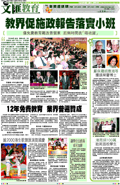 【本報訊】(記者 歐陽杏櫻) 《施政報告》將於下周三公布,多項受關注的教育議題有可能在今年著墨,除了教育界爭取多年的小班教學,亦有傳政府積極研究實行12年免費教育,多個教育團體、學校校長、學者百多人昨參與小班教學研討會。會上,教育界人士強烈要求盡快落實小班教學,亦憂慮小班教學因12年免費教育的建議而再次被忽略。教育界人士坦言,實行12年免費教育只屬「小恩小惠」,無助改善教學質素,更有人揚言「今次《施政報告》沒有落實小班教學及時間表,便不會收貨。」