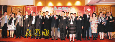 【本報訊】(記者 沈清麗)為慶祝中華人民共和國58周年國慶,九龍社團聯會日前假帝京酒店宴會廳隆重舉行慶祝國慶酒會,政制及內地事務局局長林瑞麟、中聯辦九龍工作部部長林武蒞臨擔任主禮嘉賓。在酒會上,他們聯同藝術發展局主席馬逢國、全國政協常委楊孫西、全國人大代表羅叔清、全國政協委員朱蓮芬,及九龍社團聯會國慶籌委會會長朱樹豪、主席高寶齡、中聯辦九龍工作部副部長余汝文等,帶領其他與會人士逾300人,共同舉杯祝賀偉大祖國繁榮昌盛。