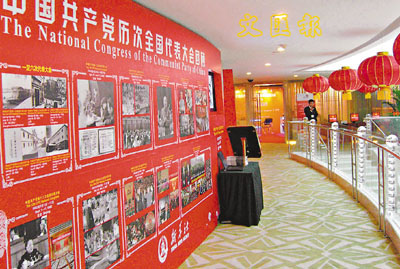 ■設立在十七大新聞中心二樓的中共歷次全國代表大會回顧圖片展。 中新社