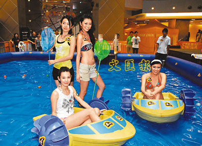 【本報訊】(記者 梁靜儀)Krusty與郭思琳及Isabel chiu昨日出席《Emax西沙水世界》活動,眾人齊玩室內水上遊戲,其中郭思琳與Isabel更以比堅尼加熱褲上陣,吸引了近百多名攝影發燒友到場,相比之下Krusty的密實打扮就失色得多。面對過百對色迷迷的眼睛,郭思琳卻表現從容,她表示之前都著過比基尼行騷,所以不覺得有問題。言語間她又自爆真胸上陣:「今日我都做好晒防走光預備,不過到場先知無晒乳貼,但現場又買唔到。」說到她與Isabel搶去Krusty鏡?郭思琳卻問非所答:「自己都不大,我同Krusty都是同類人。」鋒頭被搶的活己嵐,唯有靠口術替自己搶回一點注意力,她笑說:「我有帶備比堅尼到場,不過自己大頭蝦不見了一邊pat(胸墊),之前去澳洲遊水時都試過一次,那次重兩邊pat都無晒,著鱈嶁郁鬫n平兼又怕飛釘,所以全程用手巾包住自己。」張詠恩對於被搶鏡就大方地笑說:「兩位model胸前一片偉大,她們好身材至可以咁性感。」