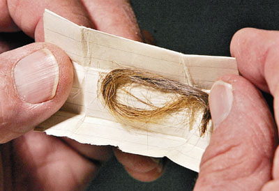 ■比略爾多收藏的哲古華拉一束頭髮,本月底將拍賣。 美聯社