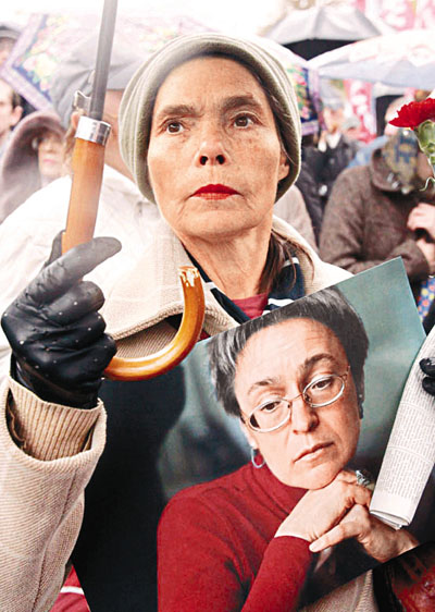 昨日同是莫斯科《新報》女記者波利特科夫斯卡婭被刺身亡1周年,她曾以報道克宮殘酷對待車臣人民,猛烈批評普京政策贏得國際聲譽,自由派政黨及民權團體向她致敬。共2,000人手持其相片,在普什金廣場出席悼念集會。 ■新華社/中央社/路透社/綜合外電消息