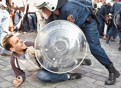 瑞士首都伯爾尼前日發生暴力示威,極端左翼分子欲阻撓瑞士人民黨的拉票活動,大肆破壞,警方施放催淚氣體驅散,拘捕42人,18名警員及3名示威者受傷。