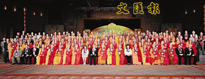 ■兩岸四地的佛教界代表在開幕禮上合照。 本報記者潘達文攝