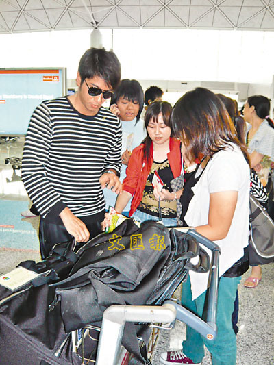 【本報訊】無線新劇《少年四大名捕》一眾演員林峰、吳卓羲(Ron)、陳鍵鋒、馬國明及徐子珊等昨晨於機場出發到雲南進行三星期的外景拍攝,現場所見四位「名捕」當中只有馬國明沒有Fans送機,其餘三位都各自有一大班Fans山長水遠來機場爭相影合照及向偶像送禮物,期間見Ron收禮物收到手軟,多到要即場塞入行李內。