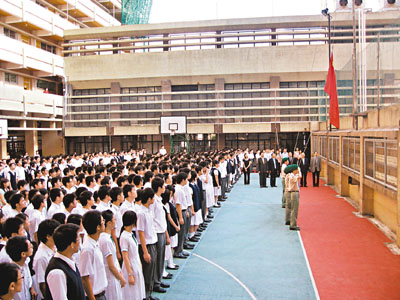 ■特區政府會推動更多學校舉行升國旗儀式,鼓勵學校成立升旗隊。圖為培僑中學開學禮舉行升旗儀式。 資料圖片