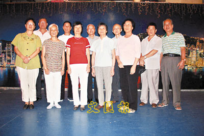 ■劉再明、胡煥長、林金來、鄒平濤等,在北角碼頭登輪準備遊船河前合攝。