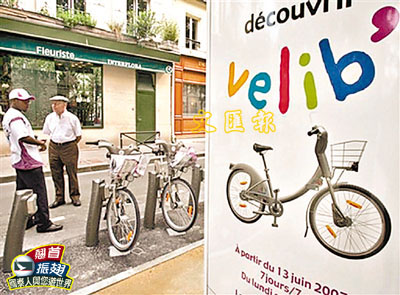 今年夏天,巴黎推出了自行車自助出租服務「Velib」。「Velib」一字由法文中的單車「velo」及自由「liberte」結合而成,即是自由使用單車的意思。巴黎市民和遊客能透過這種既經濟又環保的交通工具遊遍整個城市。由於計劃剛推出不久,當地尚未有英文小冊子可供索取,幸好Velib自動售票機上有出租手續的英文說明,唯有花點時間研究一番。