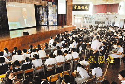■今年施政報告其中一項著墨較多的是教育政策,香港布廠商會朱石麟中學昨安排逾200名初中學生,即場觀看直播,讓學生第一時間了解政府於教育方面的新政策,更趁機上一堂通識課。本報記者李志樑 攝