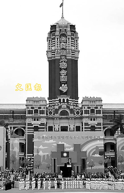 【本報訊】據中通社11日電:台灣「雙十」慶典昨天上午在「總統府」前舉行,為防範去年紅衫軍嗆扁重演,這次安全措施格外嚴格,甚至有兩組狙擊手公開出現在「總統府」樓頂,槍身清晰可辨,且槍管不時轉向並做出瞄準動作,令專家看到都認為不可思議,因為若子彈已上膛,就可能誤擊。民眾則形容這是「重回威權統治時代」。