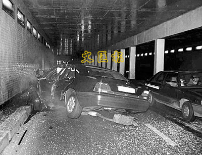 ■戴妃的汽車在隧道撞毀後的近距離照片。法新社