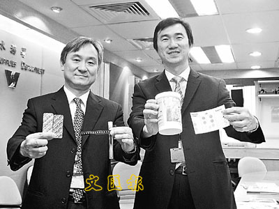 ■陳健民(左)和李大安表示,逾30間學校的師生明日會以輕便的色板和藥丸,前往船灣淡水湖測試水樣本。
