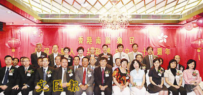 【本報訊】由南區15個漁民團體組織的「香港南區漁民活動委員會」,為慶祝中華人民共和國成立58周年,日前假座香港仔新光酒樓舉行聯歡宴,筵開40多席,場面熱鬧。