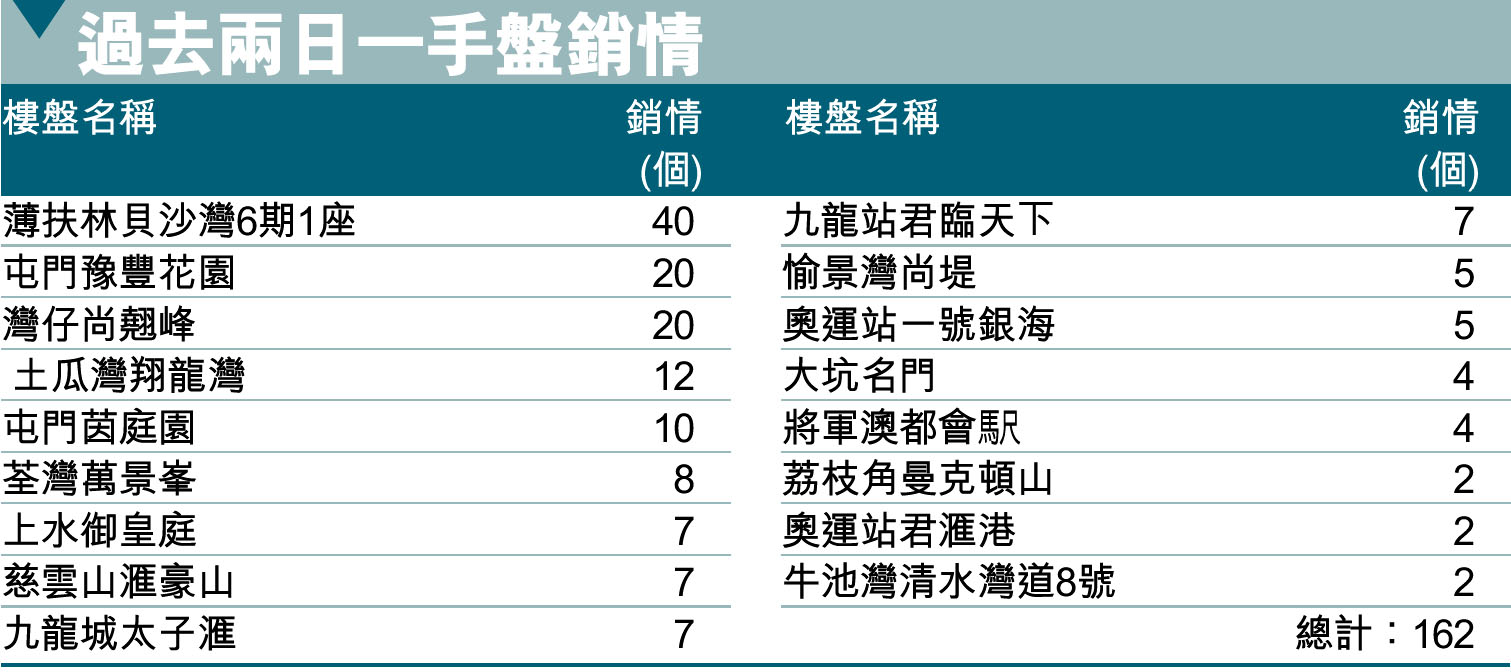 過去兩日一手盤銷情 (圖)