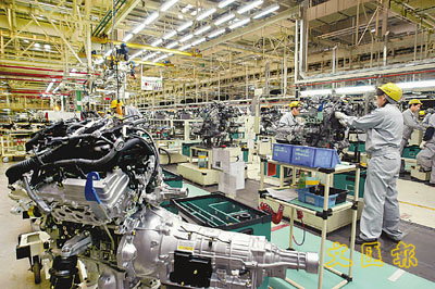 ■德國一報告表明,23年後,發展強勁的中國將成為世界經濟的領頭羊。圖為天津一汽車廠車間。資料圖片