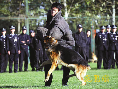 近日,北京朝陽警方舉行警犬比賽,對訓犬員和犬隻進行全面素質的檢驗以提高應變能力。 中新社
