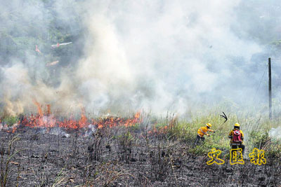 【本報訊】(記者 羅敬文)香港受到東北季候風影響,今年的重陽節天氣乾燥,部分掃墓人士遺下火種,昨日截至晚上11時,全港各區錄得101宗山火,遠高於去年的69宗。山火連場焚毀大量林木,數以萬平方米計的山林化為焦土,消防員疲於奔命,政府飛行服務隊出動所有當值的直升機,全力協助救火。