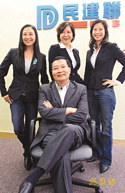 民建聯主席譚耀宗昨日率領三名女將會見傳媒。商界出身的蔣麗芸,入黨短短兩年多已躍升為副主席,她形容在黨內有很大發揮空間,加上得到中委會的支持,以及黨主席的教導,令她獲益良多,並期望未來可以專責推動社會企業發展,喚起商界關注社會責任,對基層市民有更大承擔。