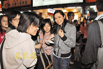 【本報訊】鄧健泓、庾澄慶及6位味之天使拉大隊到台灣錄影最後一集遊戲節目《味分高下終極踩台》。前晚嘉賓有郭羨妮(Sonija)、貝安琪、錢嘉樂、洪天明、謝天華和台灣藝人莎莎、夏於蕎等。一行人在「饒河街觀光夜市」拍外景,吸引了過百人圍觀,場面混亂。當中以郭羨妮最受歡迎,除了有多名忠心影迷連日來都伴隨左右外,前晚影迷更帶了郭羨妮主演的劇集即場播放給她欣賞,認真有心。