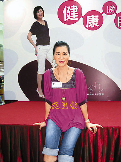 【本報訊】(記者 梁靜儀)蘇玉華昨日出席「健康膀胱.不再過度活躍」活動,並擔任「健康大使」與現場觀眾一起玩遊戲,透過遊戲讓大家認識「膀胱過度活躍」這個都市病,勝出的觀眾更可得到蔬果籃一個。阿蘇指出很多人都誤以為膀胱活躍是可以靠藥物治療的,而這個病症也並非只出現在老人家身上。阿蘇坦言也曾試過患上尿道炎,估計與她開工時忍尿及著緊身褲有關,她指患上尿道炎那種感覺很難受,因為不單會影響到生育,甚至連社交都會受影響,久而久之就會變成自閉。