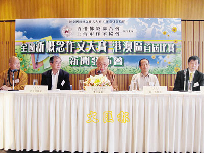 「全國新概念作文大賽」於1999年開始舉行,被學術界喻為「中國語文奧林匹克」,活動旨為推動港澳兩地青年加強母語寫作及弘揚中華文化,並推動港澳地區的青年與內地學子作文化上的交流。大會昨日邀得香港佛教聯合會會長釋覺光、香港佛教聯合會董事李家祥、澳門佛教總會理事長健釗法師等出席。香港文匯報社長張國良、理大校長潘宗光等為是次比賽的榮譽顧問。