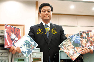 ■海關特遣隊監督連順賢展示檢獲的部分盜版光碟電影。