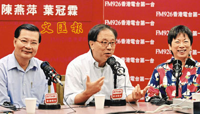 ■(左起)譚耀宗、楊森、周梁淑怡就政治委任制發表意見。本報記者李志樑 攝
