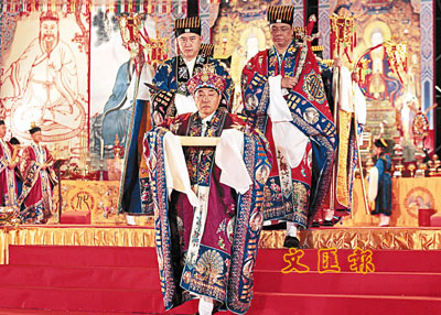 ■道教經師進行禮斗祈福儀式,宗教氣氛濃厚。 本報記者高仲明 攝