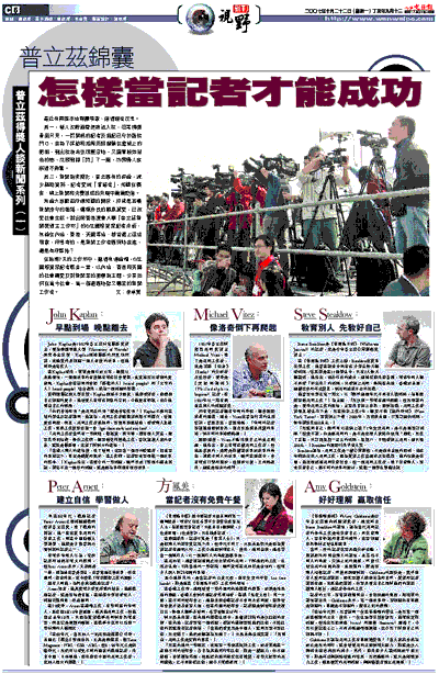 無論大家歡迎所謂知識的開放,抑或是哀嘆新聞操守的墮落,傳媒步伐的瞬息萬變,已改變社會生態。對出席香港浸會大學「普立茲新聞獎得主工作坊」的6位國際資深記者來說,無論在內地、香港、美國等地,都曾遇上這些現象,所思考的,是新聞工作者應與時並進,還是有所堅持?