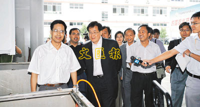 ■香港特區政府衛生福利及食物局局長周一嶽(左二)參觀供港澳農產品中轉中心