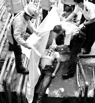 警方、消防及救護人員到場,發覺他已死亡,用布覆蓋屍體,警方在其身上檢獲遺書、銀包、身份證件、電話、鎖匙及數百元現款等財物。