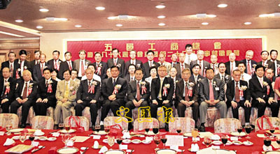 ■香港五邑工商總會就職典禮,賓主合照留念。本報記者潘曉平 攝