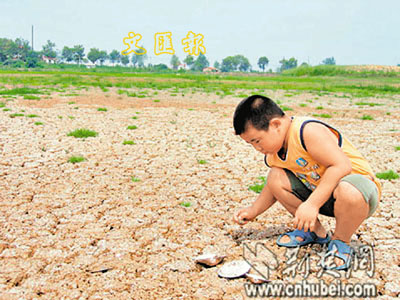 ■隨著全球變暖,武漢市地區秋季氣溫偏高、降雨偏少,將成為一個發展趨勢。圖為06年武漢乾旱景象。 網上圖片