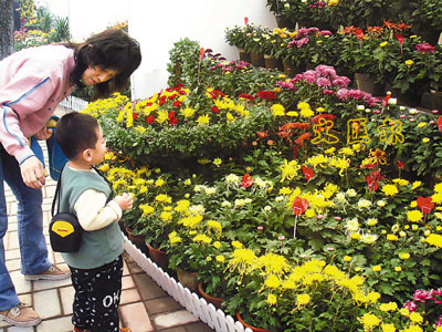 10月23日,山東濟南舉行「歷下區第二屆泉水菊花展」,近萬盆菊花爭香鬥艷。圖為市民在觀賞菊花。本報駐山東記者殷江宏 攝
