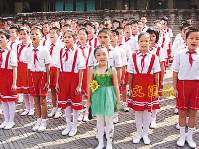 ■三百學童齊誦《朱子家訓》,場面壯觀。本報記者陳卓棟 攝