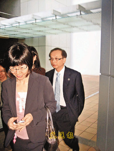 ■理大副教授葉偉雄(後)在妻子(前)陪同下出庭。