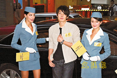 ■吳建豪出席名錶宣傳活動,由兩名空姐打扮的靚女陪同出場,甚見派頭。