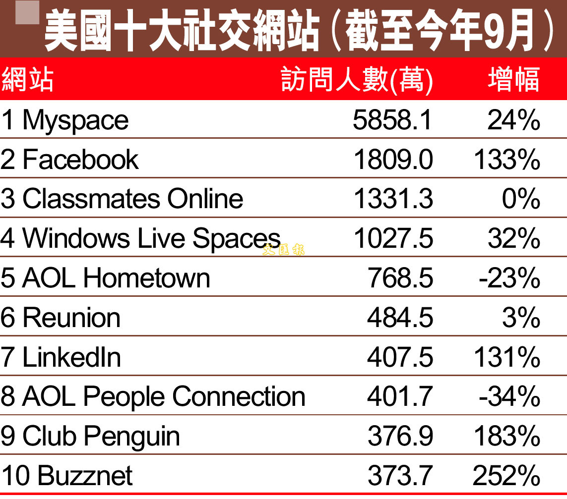 美國十大社交網站(截至今年9月) (圖)