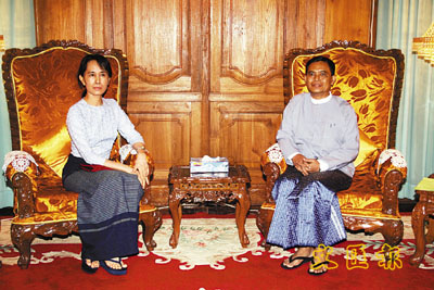 ■昂山素姬昨日與勞工部長昂吉會面。法新社