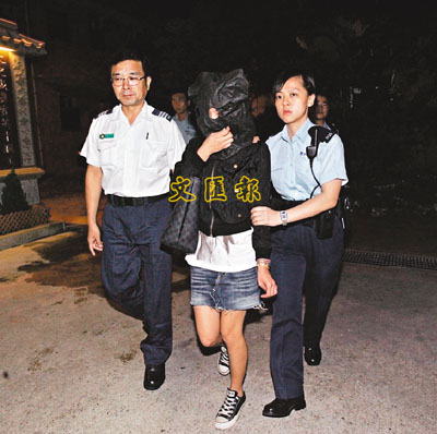 ■在大欖涌村斬傷男友被捕的女事主蒙頭帶署。