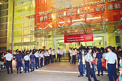 ■舉行第二屆亞洲室內運動會的運動場懷疑被放置炸彈,澳門警方到場搜索,加強戒備。