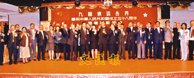 ■九龍東各界慶祝國慶,賓主舉杯祝酒。
